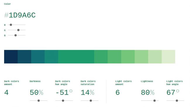 این مورد یکی دیگر از ابزارهای عالی برای انتخاب رنگ و تهیه یک پالت رنگی است. در این ابزار روی انتخاب رنگها براساس مقیاسشان تمرکز میشود. میتوانید یک مقدار RGB را در بالای نوار رنگی وارد کرده و بعد از آن براساس مقیاسهای موجود رنگهای متفاوتی را از طریق اسلایدر بدست بیاورید.