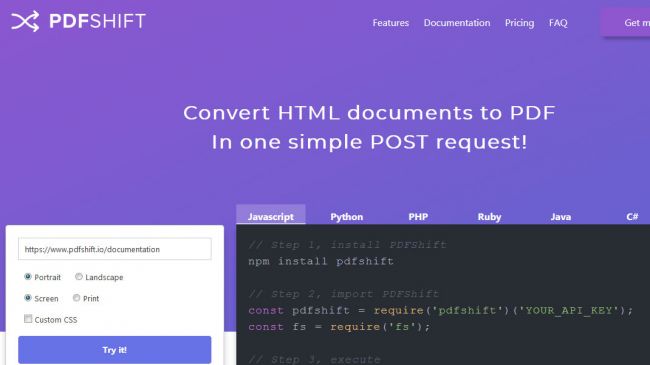 گاهی اوقات سادهترین کارها میتواند روال پیادهسازی بسیار سختی داشته باشد و به نظر من تبدیل کردن یک سند HTML به یک سند PDF میتواند یکی از این کارها باشد. PDFShift راهحل بسیار با ارزشی را برای این موضوع فراهم کرده است. تنها با یک درخواست POST این ابزار میتواند از یک سند HTML یک فایل pdf را برای شما ایجاد کند. همچنین گزینههای بسیار زیادی برای ویرایش و شخصیسازی خروجی در نظر گرفته شده است که میتوانید از آنها استفاده بکنید. میتوانید سربرگ/پابرگ، واترمارک و... را به pdf اضافه بکنید و باید بگویم که تمام این موارد تنها از طریق css انجام میشود. در نسخه رایگان آن شما به تعداد ۲۵۰ مورد محدود شدهاید اما اگر مقداری پول بدهید میتوانید این محدودیت را بردارید.