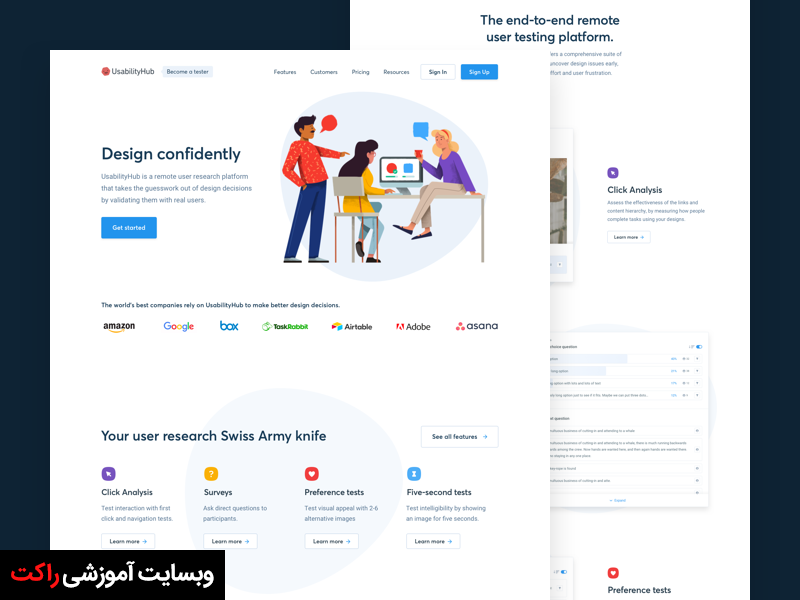 UsabilityHub یک گزارش حاوی نقشههای گرمایی به شما میدهد، که نشان میدهد کاربر شما کجا کلیک کرده است.همچنین شما میتوانید برای مشاهده اولین واکنش کاربر به طراحی خودتان یک تست 5 ثانیه ای ایجاد کنید.