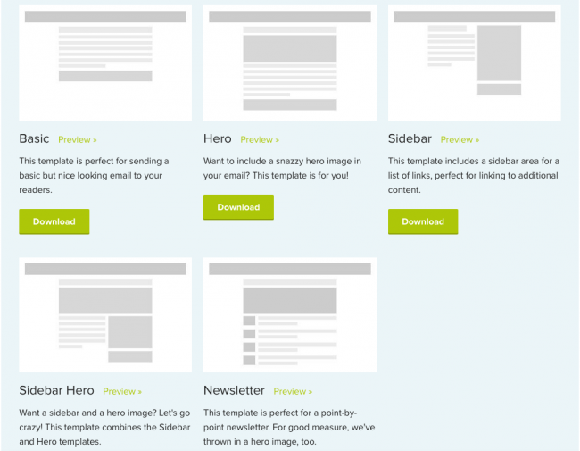 Campaign Monitor ابزاری را به شما ارائه میدهد که با استفاده از آن در کمتر از ۶۰ ثانیه میتوانید قالبهای آنلاین خبرنامهای را ایجاد کنید. تمام قالب های این پلتفرم به صورت کامل تست شدهاند و با موبایل سازگاری دارند. وقتی که قالب را نیز به خوبی طراحی کردید میتوانید آن را دانلود کنید و یا آنکه در حساب Campaign Monitor آپلود کنید.