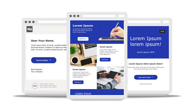 99Designs به شما سه قالب مختلف برای قسمت خبرنامه وبسایت میدهد که میتوانید براساس ویژگیهای منحصر به فرد خودتان آنها را ویرایش و شخصیسازی کنید. هر کدام از قالبها شامل یک قالب تبلیغاتی و یک قالب برای رویدادهای ایمیلی نیز میشود.