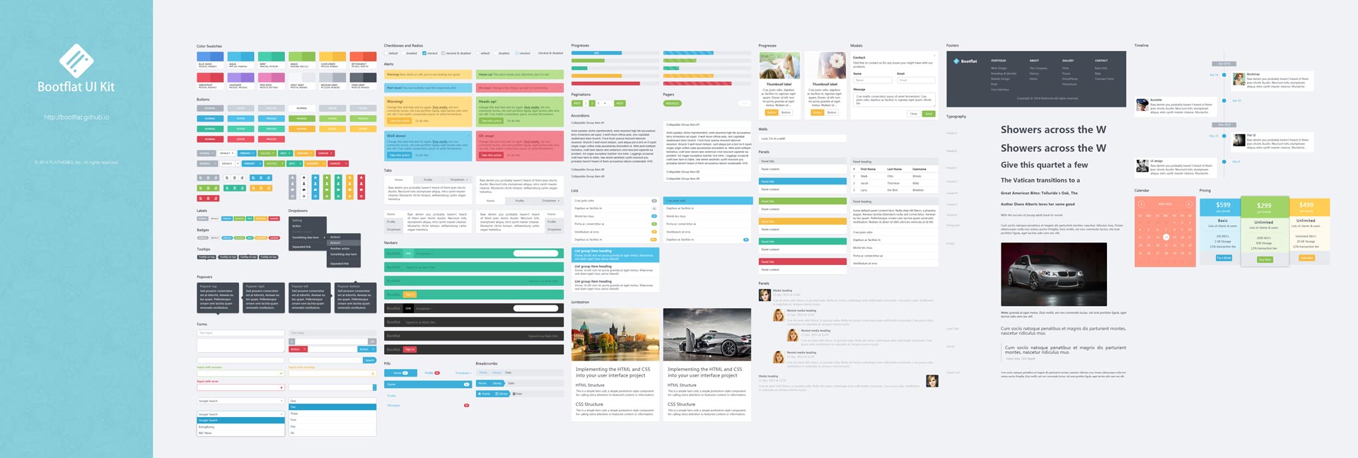 Bootflat یک کیت سیاساس فلت مبتنی بر توییتر بوت استرپ ۳ است که به شما به سادگی و سرعت زیاد اجازه می دهد تا اپلیکیشن های تحت وب خود را بسازید.