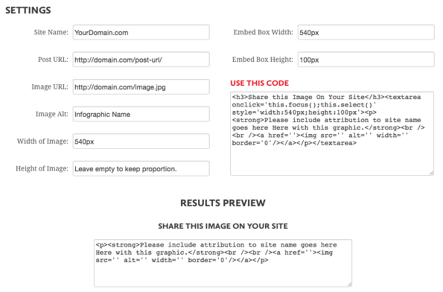 سپس وقتی که اینفوگرافیک آماده شد, شما باید راه اشتراک گذاری اون رو هموار کنید. برای انجام این کار, با استفاده از ابزار تولید Siege Media کد مورد نظر رو بسازید.