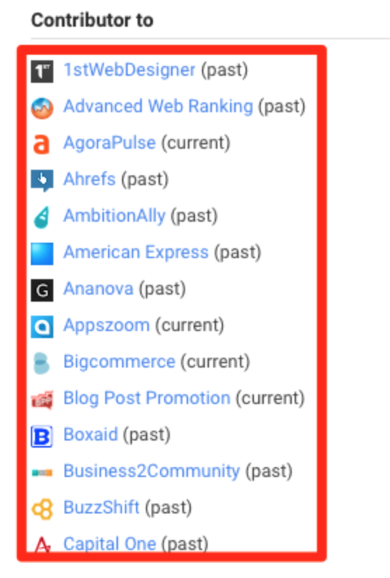یک مثال رو در نظر بگیرید, پروفایل کاربری یک نویسنده ی فریلنسر به نام Kristi Hines از پروفایل گوگل پلاس اون روی About کلیک کنید سپس در بخش Contributor شما میتونید لیستی از تمام وبسایت هایی که مشارکت داشته رو ببینید :