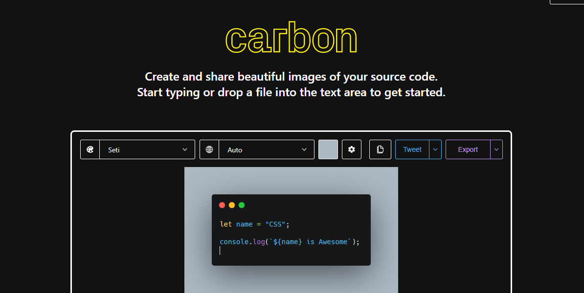 این یک ابزار رایگان است که به شما توانایی خلق تصاویری زیبا را برای کدهایتان میدهد. همچنین میتوانید تصاویر را به صورت PNG یا SVG دانلود کنید.