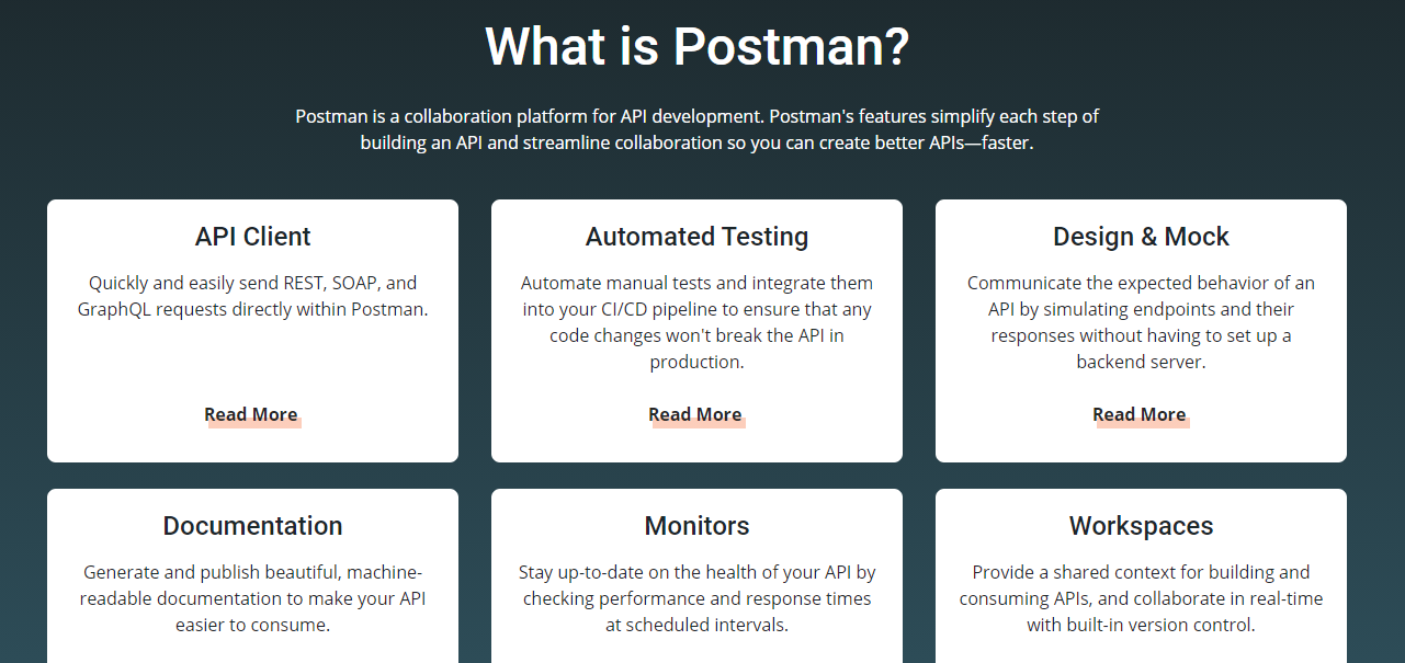 این ابزار یک پلتفرم برای سادهسازی توسعهی API است. همچنین امکان همکاری بین توسعهدهندگان frontend و backend را ممکن میسازد. این ابزار به شما این امکان را میدهد تا بتوانید API ها را تست و مستند کنید. این ابزار بسیار مفید بوده و روند ساخت API ها را ساده میکند.