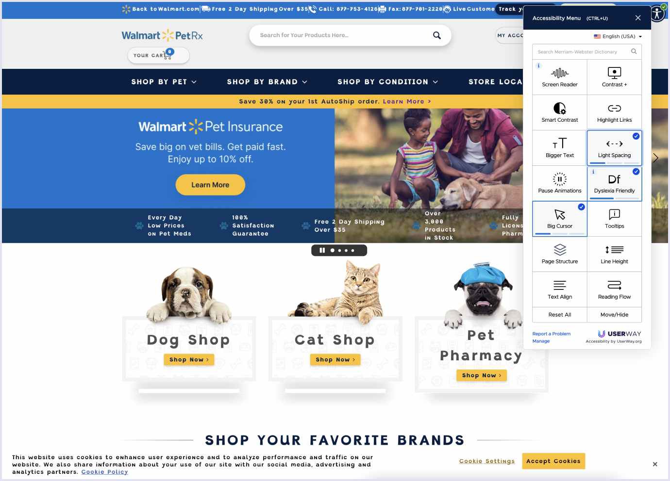 وبسایت WolmartPetRx نمونهی خوبی از ترند فراگیری است. این وبسایت با متصل شدن به یک ویجت، طراحی را فراگیر میکند. از این رو بازدیدکنندگان میتوانند وبسایت را مطابق با سلیقهی خود سفارشی کنند.