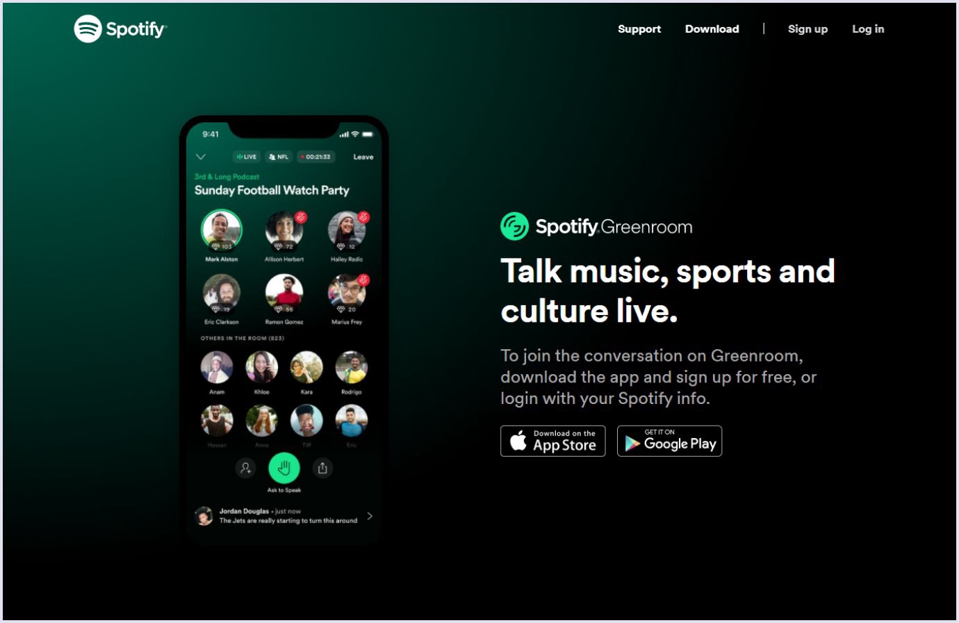 استفاده کردن از اپلیکیشنهای صوتی میتواند فرصت خوبی برای گوش دادن به مردم در مورد موضوعات خاص باشد. شرکتهای زیادی از این اپلیکیشنها استفاده میکنند. به عنوان مثال Spotify برنامهی Greenroom را راهاندازی کرده است.