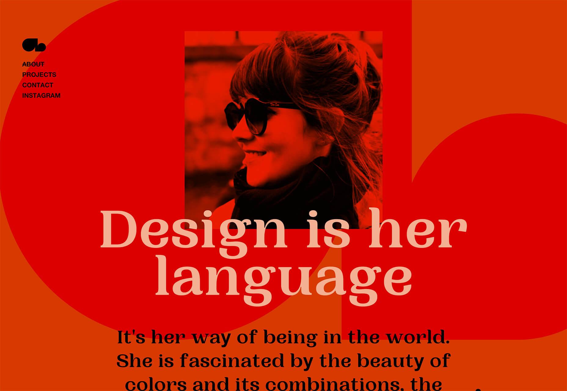 آماندابراگا از يك پالت رنگ يكنواخت كاملا قرمز براي صفحه دربارهي سايت portfolio خود استفاده كرده است. خيرهكننده، غيرقابل چشممپوشي بوده و توجه را به خود جلب ميكند. حتي عكس نيز رنگ قرمز دارد.