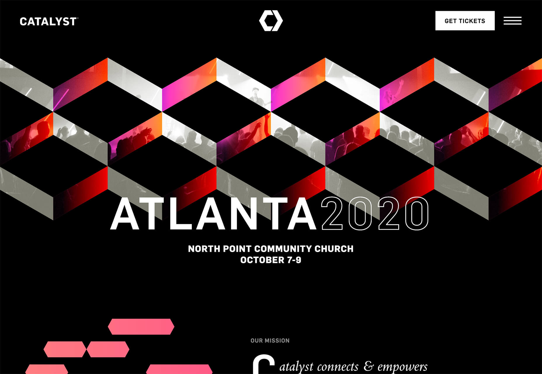 كاتاليست از جرقههاي قرمز با طيف رنگي استفاده ميكند تا شما را به شكل هندسي سهبعدي در تصوير عنوان يا Hero جلب كند. اين طرح حس پويايي و هيجان درمورد پديده ايجاد ميكند.