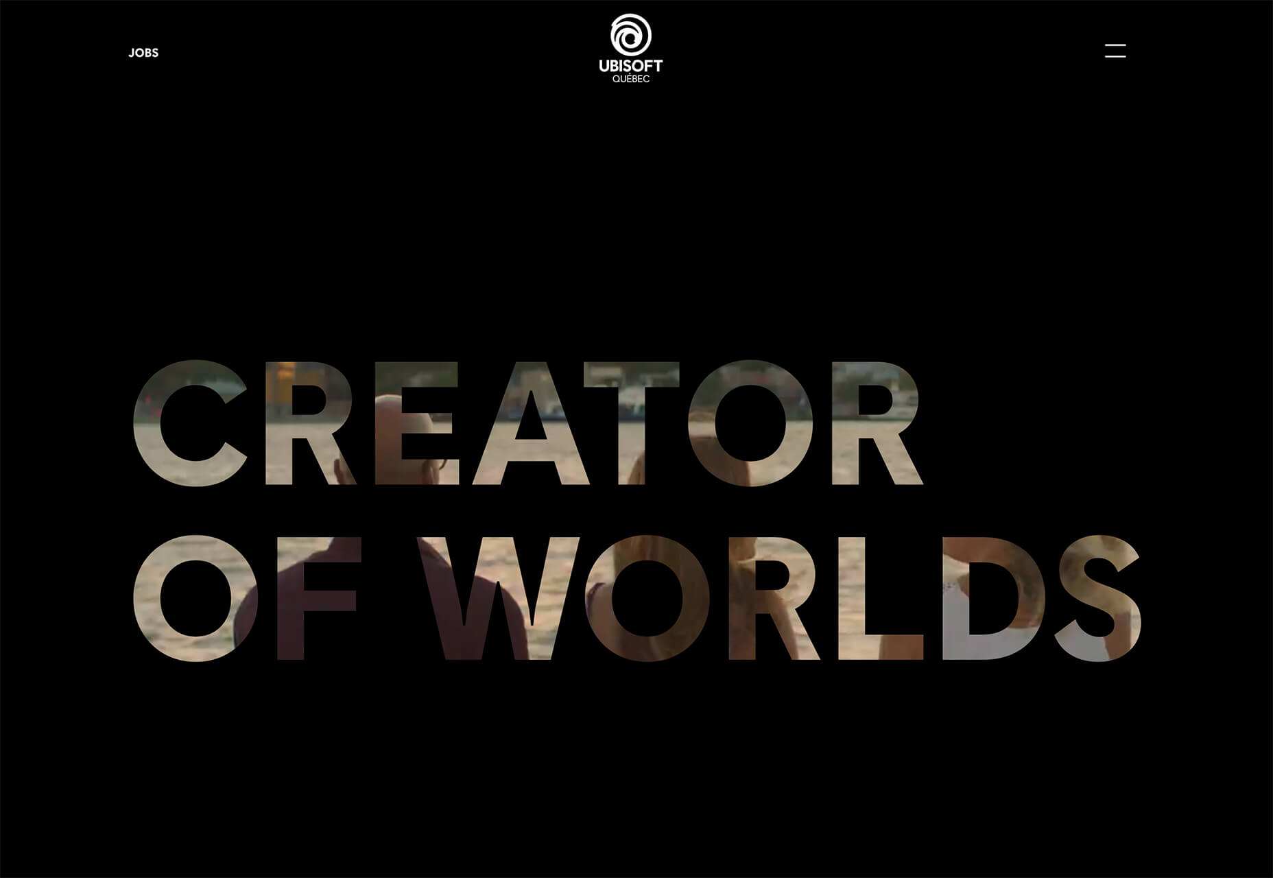 Ubisoft از يك ويديوي تمام صفحه استفاده ميكند كه به شما يك نماي اجمالي از تصاوير موجود درون عنصر متن ميدهد. در اين طراحي هيچ نشانه بصري واضح جهت كشيدن صفحه ديده نميشود (كه وجود دارد)، اما يك آيكون منوي همبرگري يك نشانه بصري است كه در اين سايت مواردي بيش از تنها يك صفحه نخست وجود دارد.