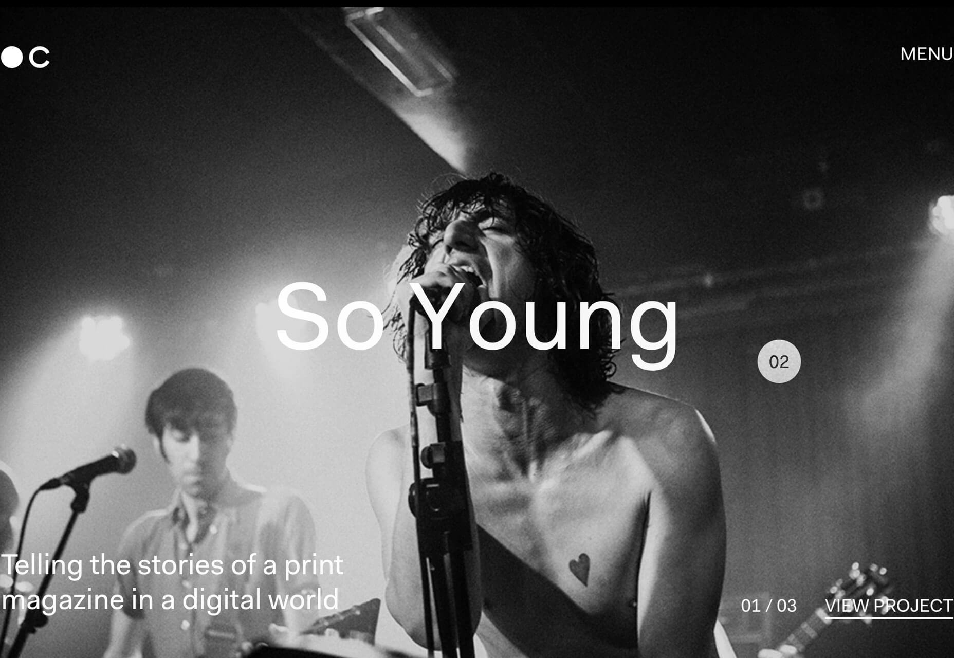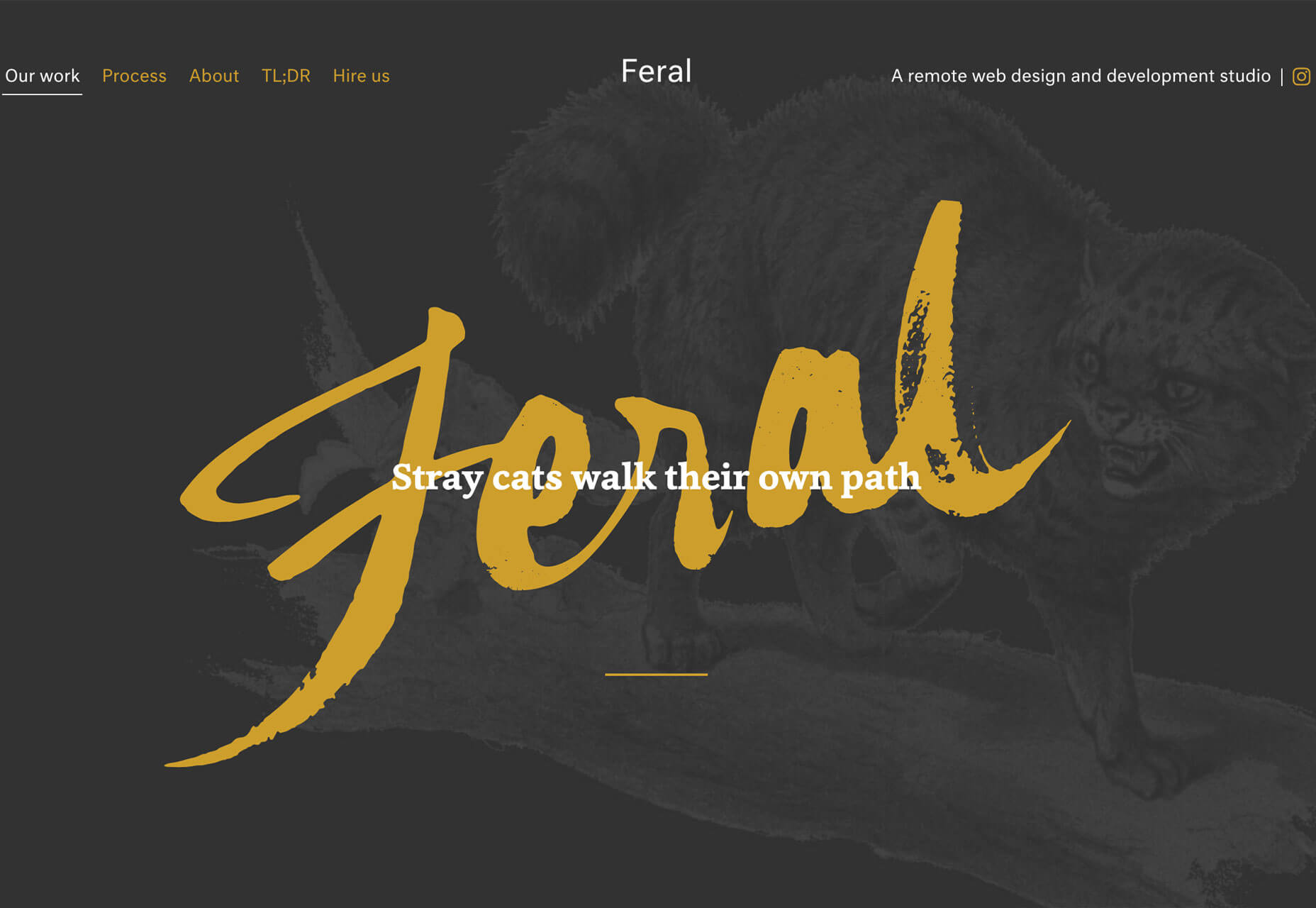 یک نمونه دیگر از حالت وبسایت Feral است که در آن متنی با استایل دستنویس در وسط صفحه قرار گرفته و باقی المانها حول محور آن واقع شدهاند. المانهای دیگر طراحی که در این وبسایت مشاهده میکنید نسبت به خود متن اصلی، مینیمالتر هستند.
