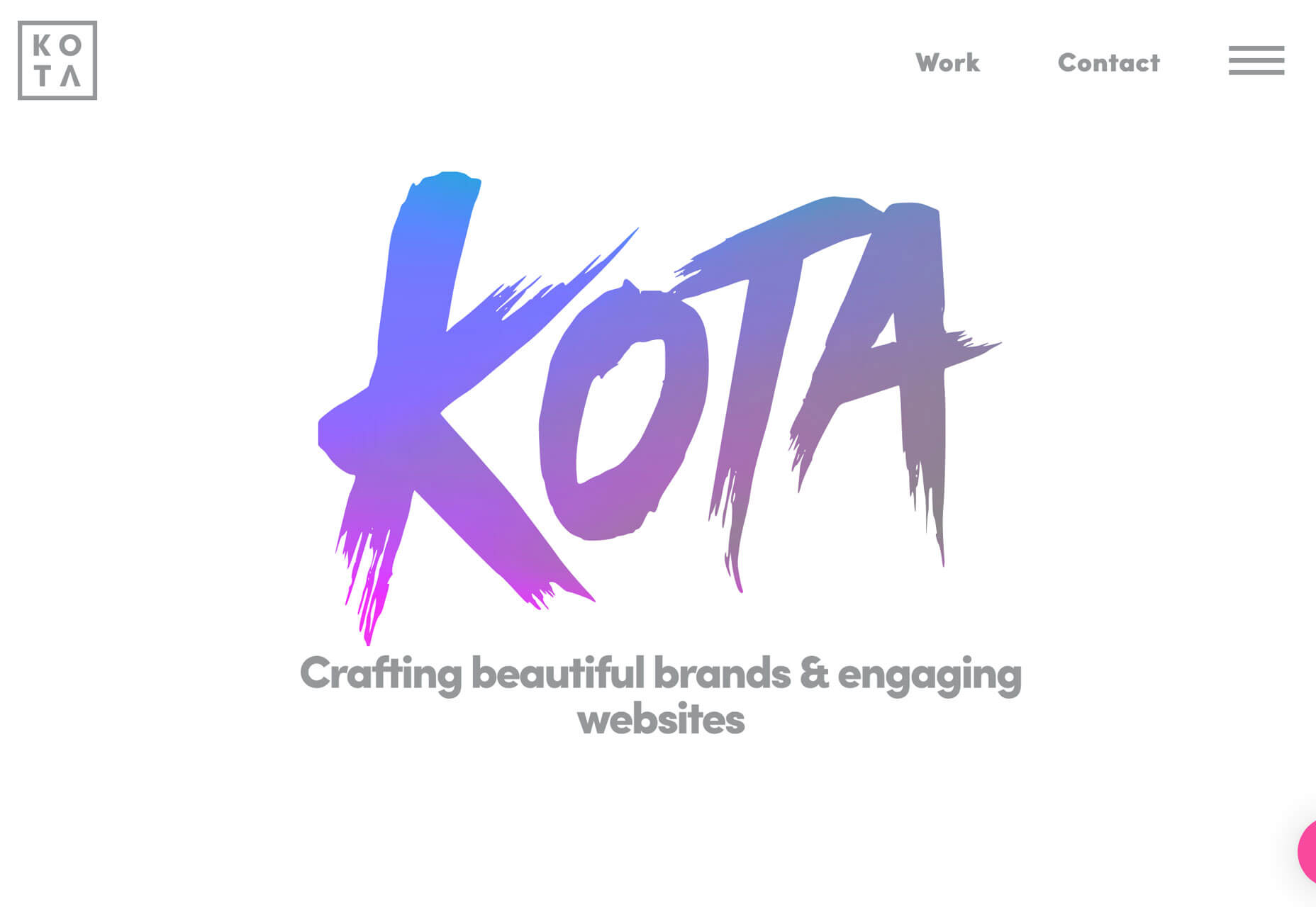 Kota یک نمونه عالی از این ماجرا است که در ابتدا از یک گردینت با استایل مینیمال بهره گرفته است. در حالیکه متن اصلی این وبسایت در خاطر میماند و بسیار میتواند زیبا باشد، اما لوگوی اصلی آن از یک مربع ساده تشکیل شده که از سری فونتهای Sans Serif بهره میبرد. اما خود متن و دیگر قسمتهای وبسایت به صورتی طراحی شده اند که هر کدام شکل یک CTA یا دکمه Call To Action را به خود گرفتهاند. به همین دلیل است که کلیک کردن روی هر کدام از لینکها تا حدی لذت بخش و جذاب است.