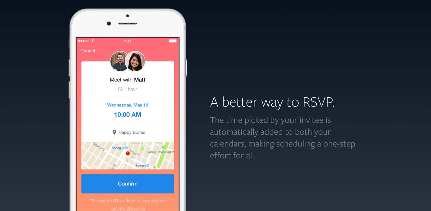 اگر شما نیز مانند من از طرفداران Sunrise هستید، بنابراین این اپلیکیشن برایتان عالی خواهد بود. Sunrise Meet به شما اجازه میدهد تا زمانهایی که برای خودتان باید کار کنید را تعیین نمایید و بعد با استفاده از یک لینک منحصر به فرد آن را با دیگران به اشتراک بگذارید. بدین صورت آنها میتوانند وقتهایی را که میتوانید برای آنها کار کنید را شناسایی کنند.Sunrise Meet توانایی ادغام شدن با حسابهای مختلف شبکههای اجتماعی و... را دارد.