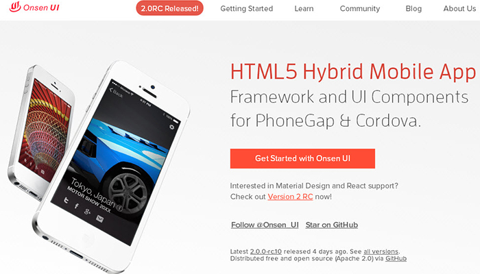 Onsen UI شامل مجموعه ای از کامپوننت های رایگان HTML5 است که با آن می توانید رابط کاربری یک اپلیکیشن موبایل را برای استفاده از پلتفرم هایی مانند کوردوا و فون گپ تهیه کنید. رابط کاربری را که این فریمورک ارائه می دهد بسیار زیبا و باشکوه است.
