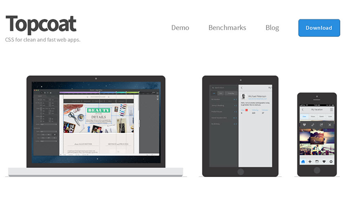 TopCoat را شرکت ادوبی به منظور تسریع فرایند طراحی فرانت-اند ساخته است. این فریمورک شامل قالب های، قابل تغییر است و همچنین از PSD UI Kit بهره می گیرید.