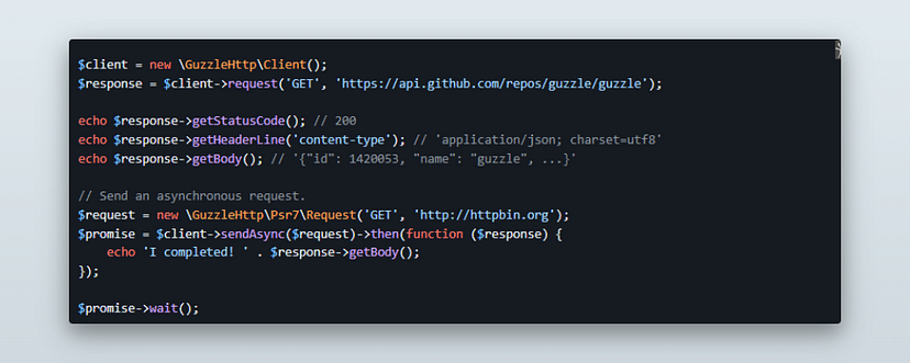 Guzzle یک HTTP Client مبتنی بر PHP است که پروسه ارسال درخواستهای HTTP و ادغام آنها با وب سرویسها را بسیار ساده میکند. با استفاده از این پروژه PHP شما میتوانید کوئریهای جدید ایجاد کنید، درخواستهای POST را مدیریت کنید، حجم عظیمی از دانلودها و آپلودها را مدیریت کنید، با کوکیهای HTTP کاری کنید و در نهایت دادههای JSON را ارسال کنید.