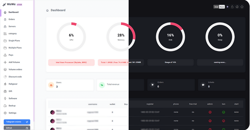Wizwizx با داشتن رابط کاربری ساده و البته مدرن کاربر پسند بوده و از امکانات مختلفی برخوردار است. به عنوان یک توسعه دهنده PHP به شما پیشنهاد میدهم که گیتهاب این پروژه را مطالعه کنید.