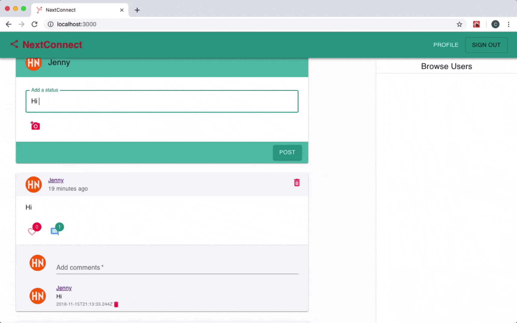 - به کمک React یا Next.js یک برنامه ایجاد کنید تا یک رابط کاربری پویا از پیامها، لایکها و پستها داشته باشید