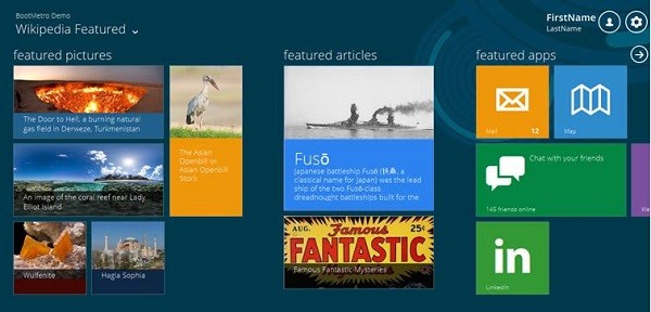 BootMetro - یک چارچوب ساده و غنی از ویژگی UI وب، بر اساس بوت استرپ، برای طراحی برنامه های وب با سبک مترو ویندوز 8 .