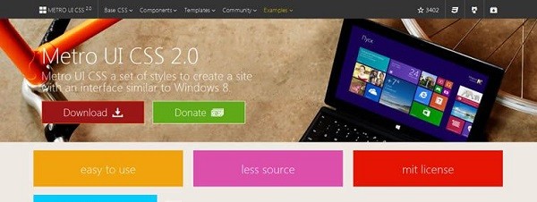 Metro UI CSS - مجموعه ای از سبک برای ایجاد اینترفیسی به مدل مترو ویندوز 8 .