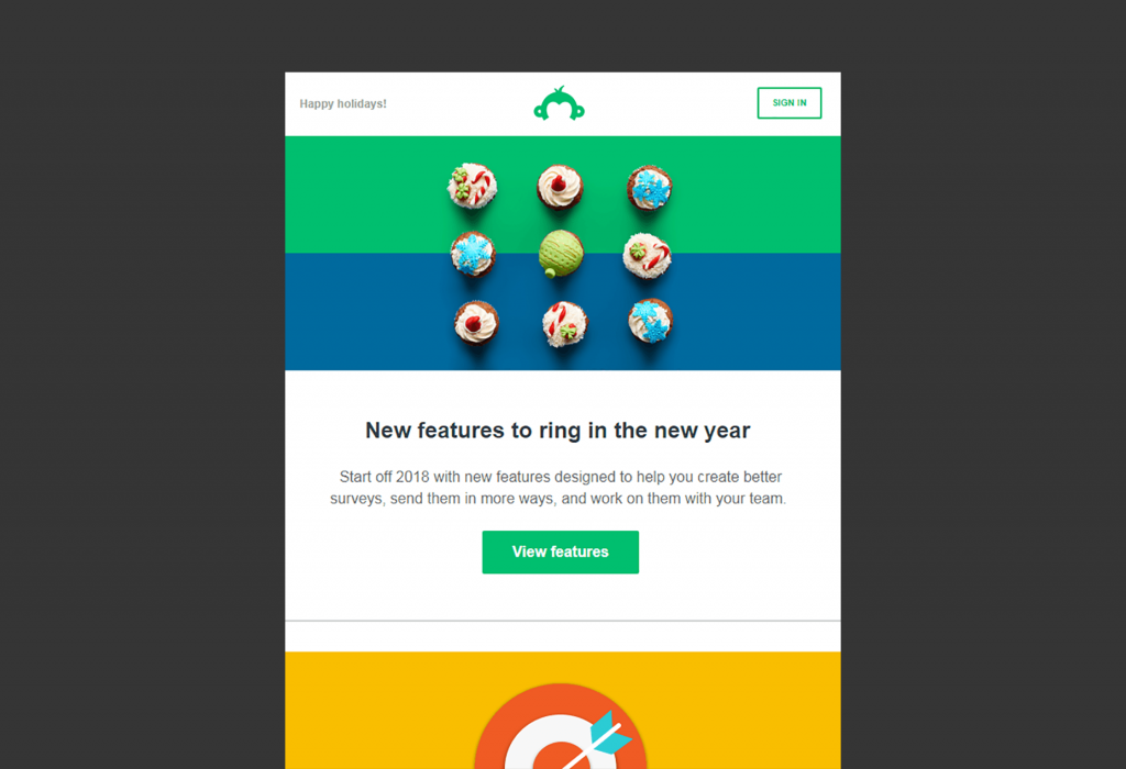 به عنوان یک نمونه موفق از ایمیل نگاهی به ایمیل زیر از SurveyMonkey بیاندازید. استفاده از یک متن با پیامی مختصر، وجود فضاهای سفید و خالی و از طرفی دیگر استفاده از دکمه CTA در یک پس زمینه سفید باعث شده که میزان خوانایی آن برای افراد مختلف بالا برود.