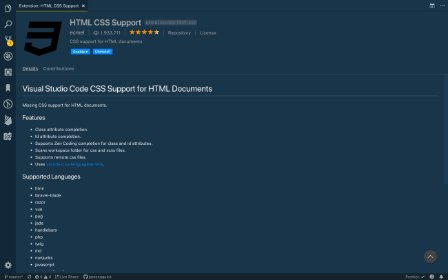 HTML CSS Support (و افزونه بعدی در لیست) قابلیت intellisense را در فایلهای HTML شما، بر پایه CSSای که در پروژه شما شامل شده یا به آن ارجاع شده است، فراهم میکند. در اینجا یک لیست کامل از امکانات آن را مشاهده مینمایید.