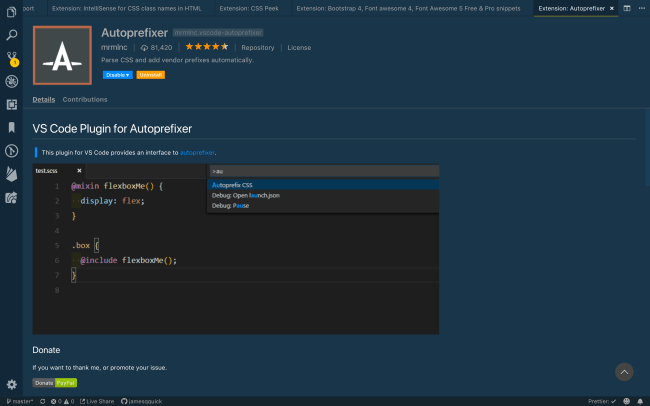 Autoprefixer به طور خودکار پیشوندها را اضافه میکند، تا تضمین کند که برنامه شما در مرورگرهای مختلف ظاهر خوبی دارد. این کار به شدت ساده است. Command Palette را باز کرده، و دستور Autoprefixer CSS را وارد کنید.