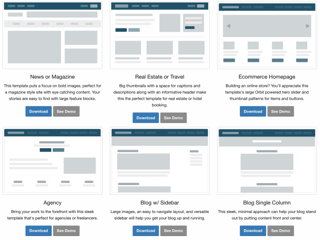 Foundation همچنین چندین قالب آغازین responsive برای کمک به شما فراهم میکند. نگاهی به آنها داشته باشید!