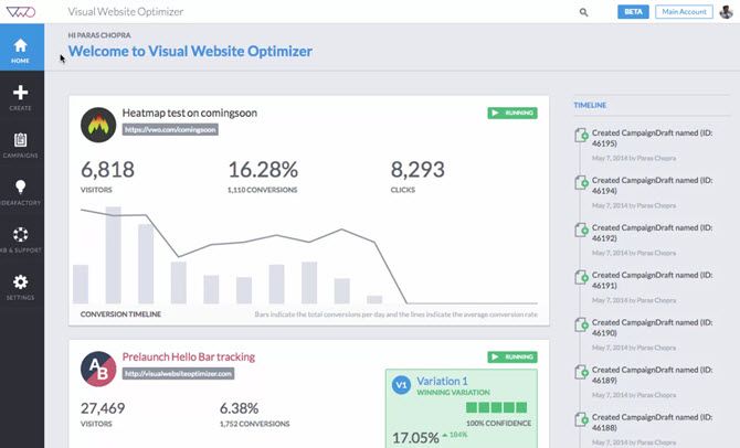 Visual Website Optimizer (VWO) ابزارهایی را برای دارندگان وب سایت فراهم میکند تا آزمایشهای گستردهای را از طریق تست A / B با استفاده از عناصر مختلف گرافیکی و متنی در صفحه انجام دهند.