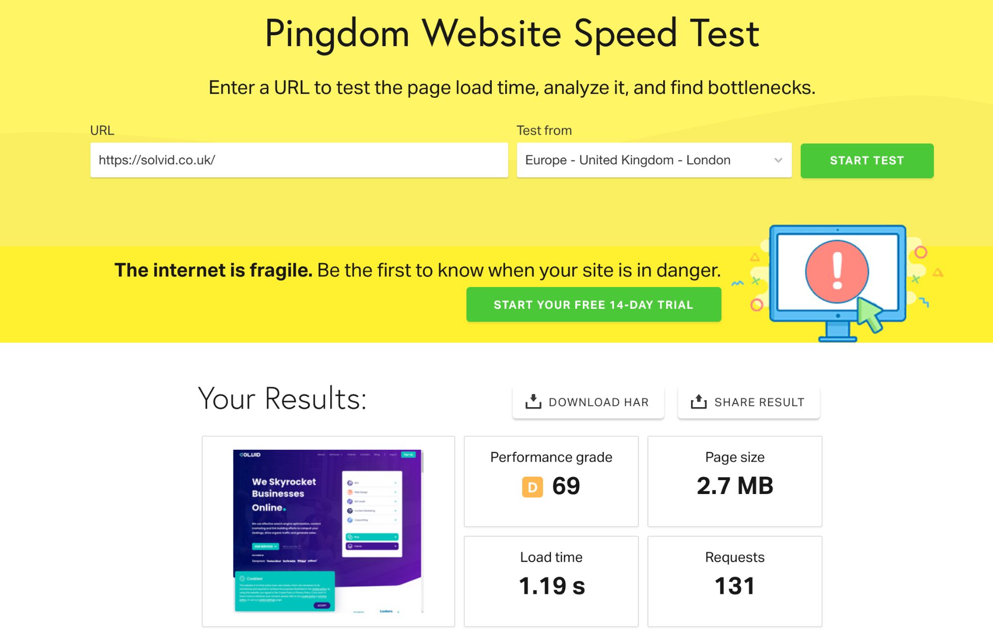 یکی از موثرترین ابزارهای تست سرعت وجود دارد که به Pingdom معروف است. برای دسترسی به ویژگیهای Pingdom هیچ گونه ورود به سیستم لازم نیست و گزارشات به طور موثر ارائه میشوند تا فقط اطلاعاتی را که کاربران برای سطح پایه نیاز دارند، در اختیار داشته باشند.