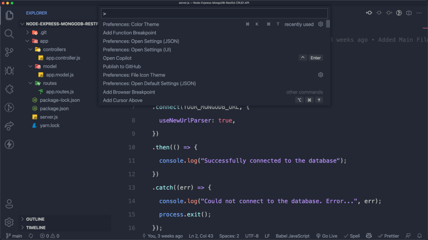 با فشار دادن cmd+shift+p در مک و crtl+shift+p در ویندوز یا لینوکس میتوانید پالت فرمان را به راحتی باز کنید.