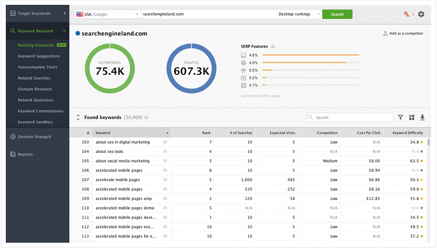 با وجود اینکه این ابزار دارای یک نسخه پولی با ویژگیهای فراوانی است، اما نسخه رایگان آن، برای تحقیقات کلیدی کافی است. این ابزار به شما امکان میدهد از تمام ابزارهای تحقیقاتی استفاده کنید و ترافیک کلمات کلیدی را تجزیه و تحلیل کنید.