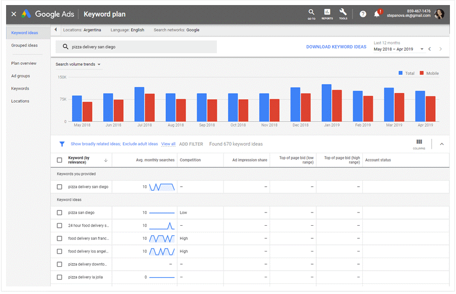 این ابزار به شما نشان میدهد که حجم جستجو، اطلاعات هزینه هر کلیک، رقابت تبلیغاتی و نوسانات فصلی ترافیکی، همه در یک مکان جای گیرند و حتی به شما این امکان را میدهد که PPC چه آینده را برای کلمات کلیدی شما، رقم خواهد زد.