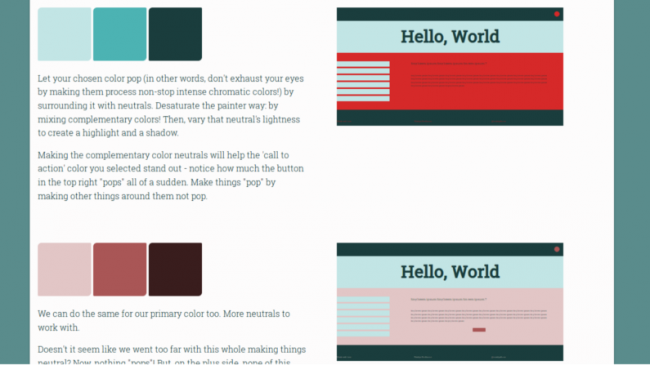 اگر میخواهید تئوری رنگ ها رو به سرعت یاد بگیرید, این یک سایت عالی برای این کار هست. سازنده ی این ترکیبی از مهارت ها رو داره : اون یک آرتیست خوب و آموزش دیده هست و همچنین یک توسعه دهنده front end, بنابراین میتونه بسیار مفید و خاص باشه. سایت اون شما رو به سمت فرآیند طراحی و کدنویسی در قالب رنگ های عالی و با استفاده از تئوری رنگ ها پیش میبره.