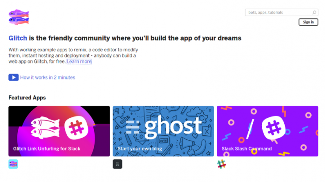 Glitch یک ابزار رایگان آنلاین هست که شما میتونید اپلیکیشن های وب رو با استفاده از دوباره سازی نمونه های آماده در سایت بسازید. همچنین یک ویرایشگر کد, هاستینگ و ابزار توسعه وجود داره و هرکسی میتونه اپلیکیشن خودشو به راحتی و با سرعت طراحی کنه.