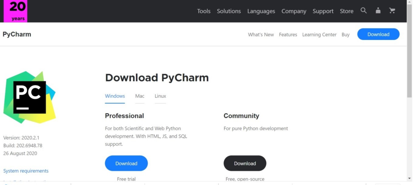 https://www.jetbrains.com/pycharm/download/#section=windows