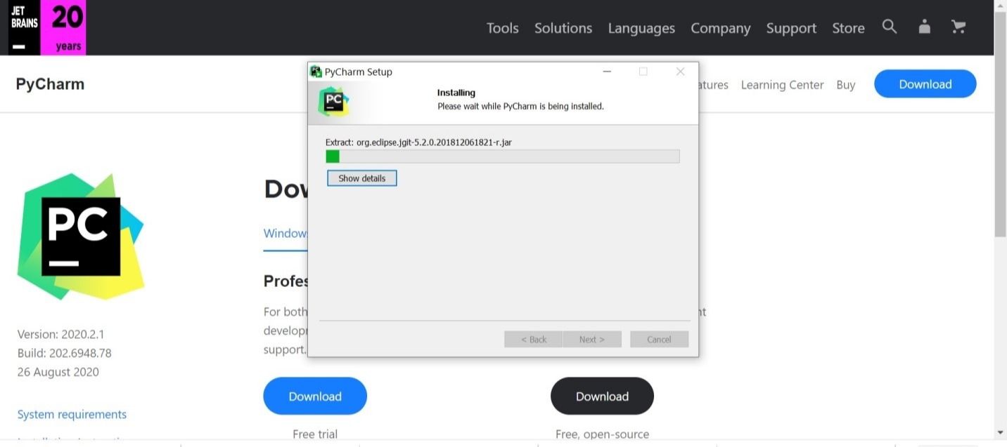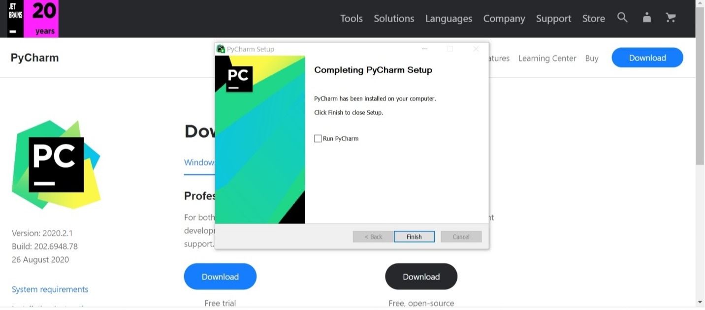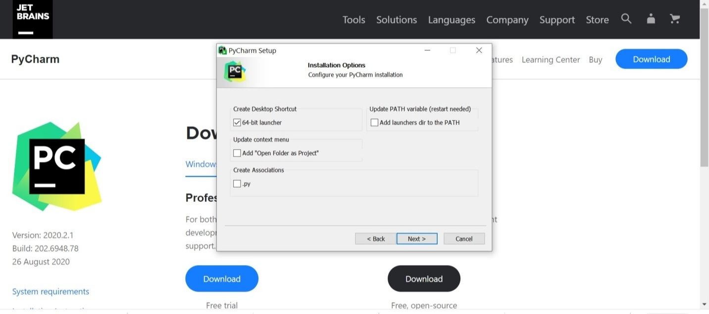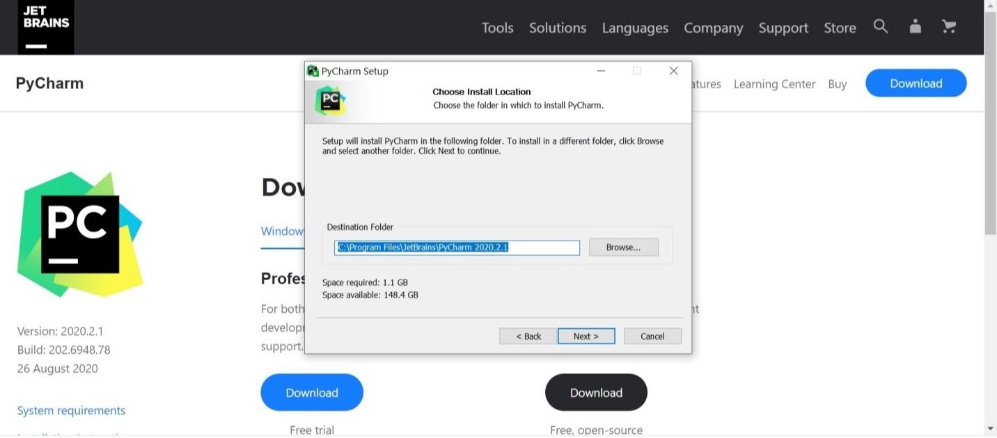 - PyCharm را از وب سایت رسمی JetBrain دانلود کنید.