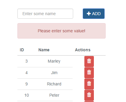 اینجا آرایه ی items شامل تمام آیتم ها و newItem شامل ساختار اطلاعات در هر آیتم میشه, اینجا من فقط name رو ذخیره می کنم. همچنین برای مدیریت خطاها از hasError و hasDeleted استفاده کردم که وقتی مقدار خالی وارد شد یا مقداری با موفقیت حذف شد پیامی نمایش داده بشه.