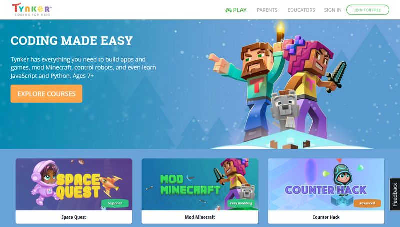 Tynker یکی از خلاقانهترین اپلیکیشنهای کدنویسی برای کودکان بالای سن ۷ سال است. همانطور که از نام این سرویس معلوم است، با استفاده از این ابزار میتوانید کاری کنید که کودکان با استفاده از کدها کارهای جادویی را انجام دهند. درست مانند اسکرچ، Tynker نیز یک زبان برنامهنویسی بصری است که شبیه به بلوکهای لِگو ساخته شده است. هرکدام از بلوکها مفاهیم متفاوتی از دنیای برنامهنویسی را به کودکان یاد میدهند. با استفاده از این پلتفرم کودکان میتوانند پروژههای عملی بسیار زیادی را طراحی بکنند.