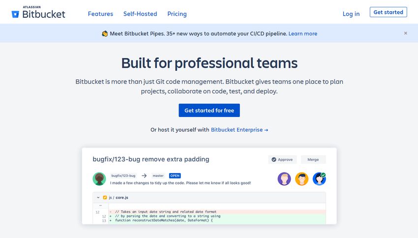 Bitbucket یک اپلیکیشن مدیریت نسخه و یک ابزار مناسب برای مدیریت سورس کد است. در حال حاضر یکی از شناختهترین جایگزینها برای گیتهاب به حساب میآید. مهمترین ویژگی رایگانی نیز که ارائه میدهد مخازن رایگان خصوصی با ۵ نفر عضو است. بنابراین بیتباکت را میتوان یک انتخاب بسیار مناسب برای فریلنسرها و تیمهای کوچک دانست.