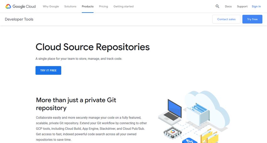 Cloud Source یک سیستم مدیریت منبع است که توسط گوگل مدیریت شده و روی پلتفرم ابری گوگل قرار دارد. اطلاعات شما روی فضای ابری گوگل قرار میگیرد که در نهایت باعث مقیاسپذیری و موجود بودن همیشگی پروژهتان میشود. این ابزار همچنین قابلیت ادغام شدن با گیتهاب و بیتباکت را به شما میدهد. بنابراین میتوانید به سادگی مخازن خودتان را به این فضا بیاورید.