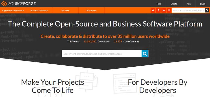 SourceForge یک پلتفرم مدیریت سورس کد برای جامعه لینوکسی است. در واقع این ابزار جزو اولین ابزارهایی بود که یک پلتفرم برای مدیریت کدها را به صورت رایگان ارائه میکرد. در حال حاضر بیش از ۵۰۰ هزار پروژه متن باز رو این وبسایت قرار گرفته که در روز ۴ میلیون دانلود دارد. پروژههای متن باز معروفی مانند Open Office، FileZila و Moodle روی این فضا میزبانی میشوند.