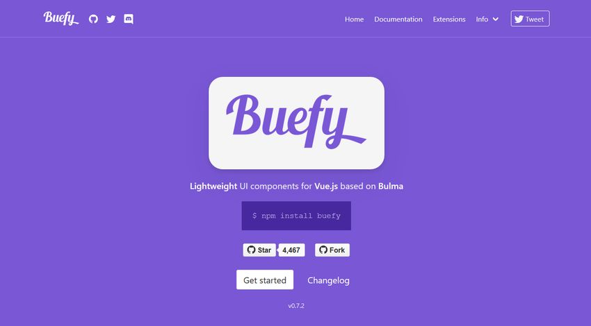 این یک کتابخانهی کامپوننت UI برای Vue.js است. این کتابخانه واکنشگرا بوده و براساس فریمورک Bulma ساخته شده است. Bulma به نوبه خود براساس flexbox ساخته شده و به همین دلیل Buefy به شما امکان استفاده از کامپوننتهای مربوط به flexboxرا در اپلیکیشنهای Vue میدهد. این کتابخانه بسیار سبک بوده و از Font Awesome و Materiak Design Icons نیز پشتیبانی میکند.