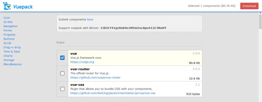 این ابزار یک استارتر کیت آسان برای پروژههای Vue.js شماست. VuePack به شما این امکان را میدهد تا بتوانید کامپوننتهای Vue.js را از یک لیست انتخاب کرده و آنها را به عنوان یک فایل جاوااسکریپت کوچک شده دانلود کنید. این ابزار شامل مجموعهای از کامپوننتهای انتخابی Vue مانند المانهای ناوبری، فرمها، نمودارها، اعلانها و غیره است. VuePack دارای قابلیتهای بسیار خوبی نظیر ESLint، Babel 6، PostCSS و پشتیبانی از Electron هم هست.