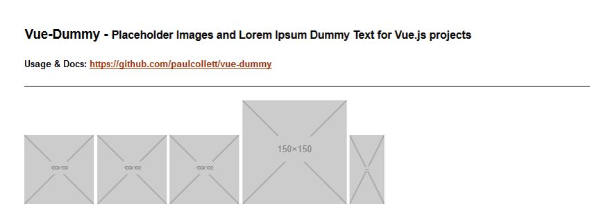 این یک پروژه ساده اما فوقالعاده GitHub است که نمونهسازی اپلیکیشنهای Vue.js را آسان میکند. این ابزار به عنوان دستورالعمل، متن Lorem Ipsum و تصاویر dummy را به پروژه Vue.js شما اضافه میکند. ابزار دارای یک سینتکس بسیار ساده است. مثلاً میتوانید یک پاراگراف 150 کلمهای را با استفاده از کد زیر بسازید: