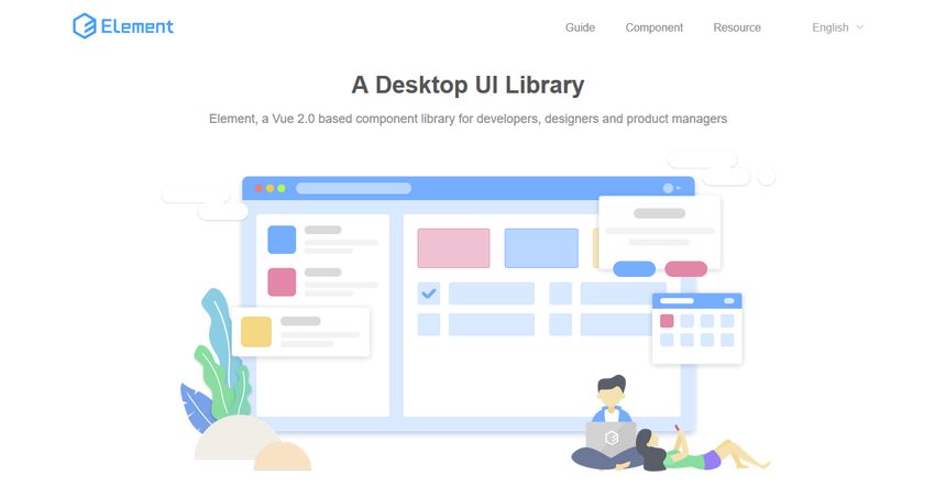 در حال حاضر Element UI یکی از محبوبترین تولکیتهای Vue.js 2.0 UI است. این ابزار کامپوننتهای Vue زیادی را برای شخصیسازی در اختیار شما قرار میدهد و شما با استفاده از آنها میتوانید یک اپلیکیشن وب حرفهای را خلق کنید. این ابزار دارای یک جامعهی بسیار بزرگ و فعال است. برای شروع به کار کردن میتوانید از استارتر کیت Element UI که توسط Vue CLI ساخته شده استفاده کنید.