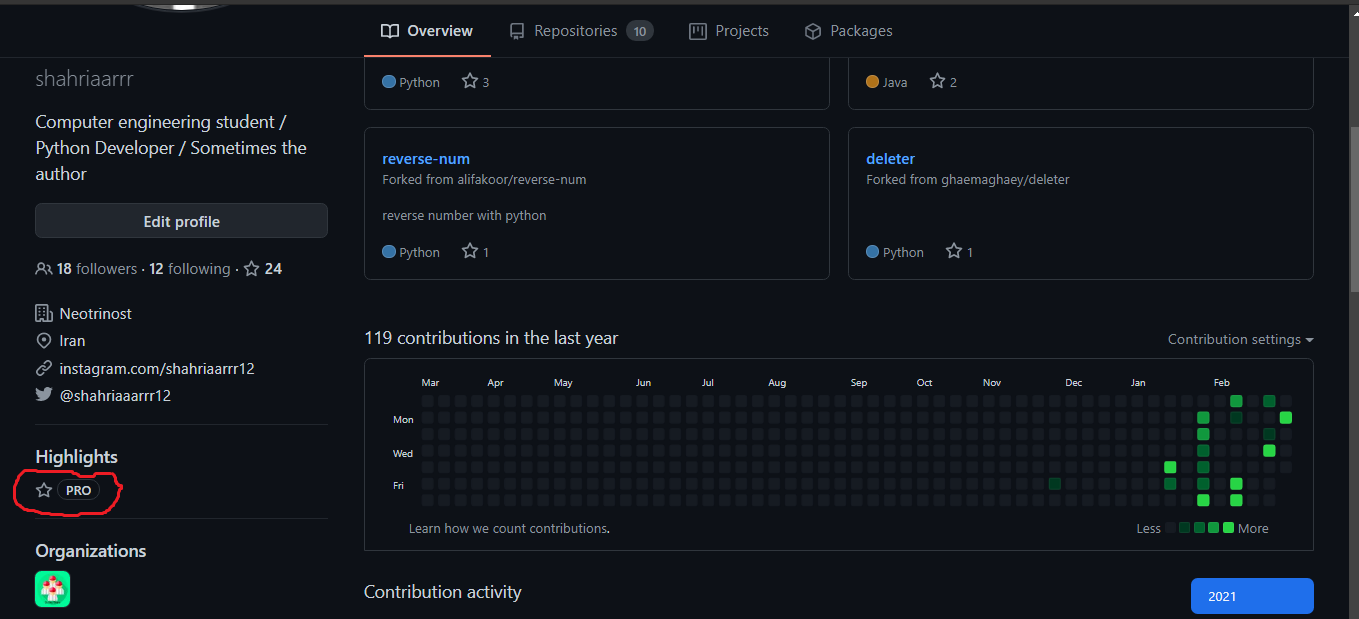 برای اطمینان بیشتر میتونین برین توی پروفایل گیت هابتون برین و اگه این علامت رو دیدین توی پروفایلتون یعنی شما پکیج دانشجویی گیت هاب رو گرفتین و اکانتتون پریمیوم شده
