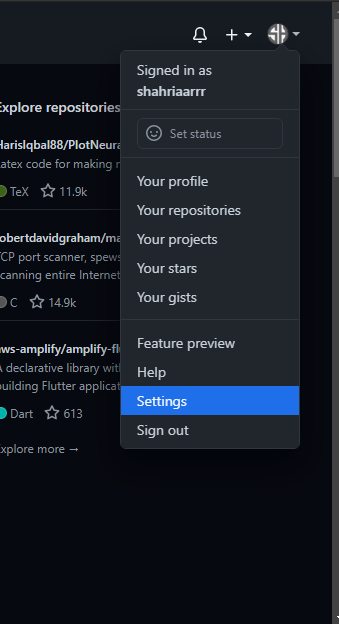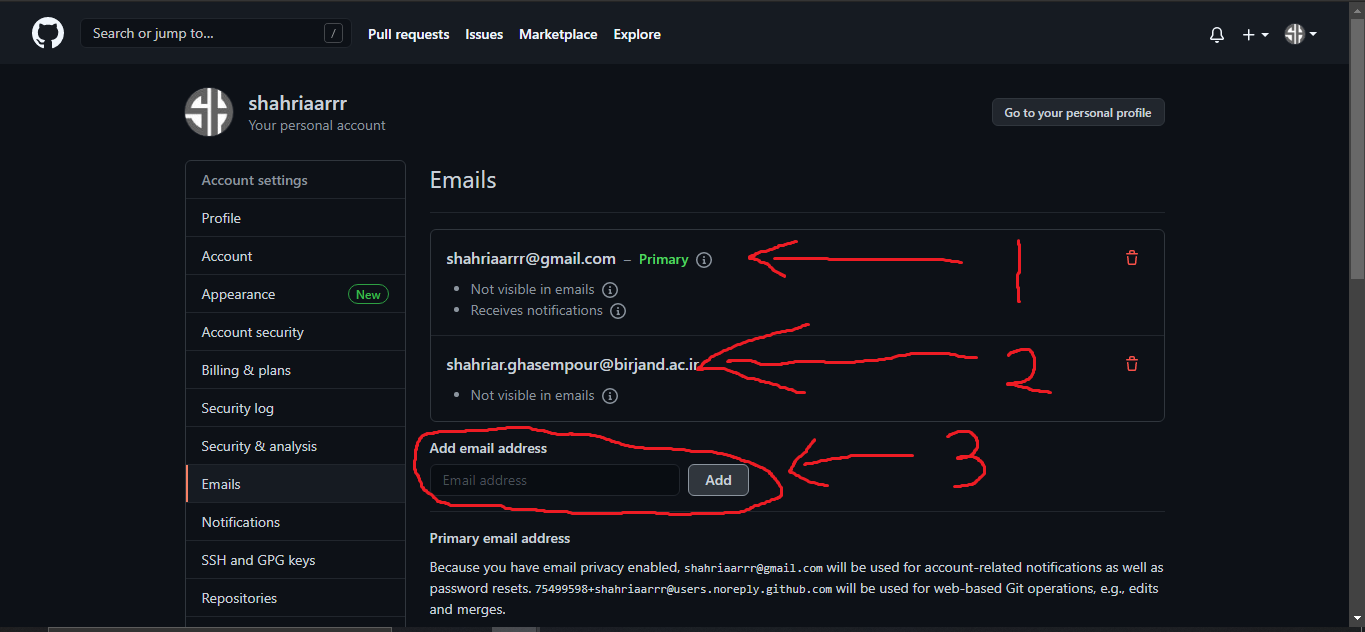 خب حالا تقریبا تمامی کار ها انجام شده.تو این مرحله ما به اکانت گیت هابمون احتیاج داریم.طبق عکس زیر به بخش email در setting اکانتمون میریم.