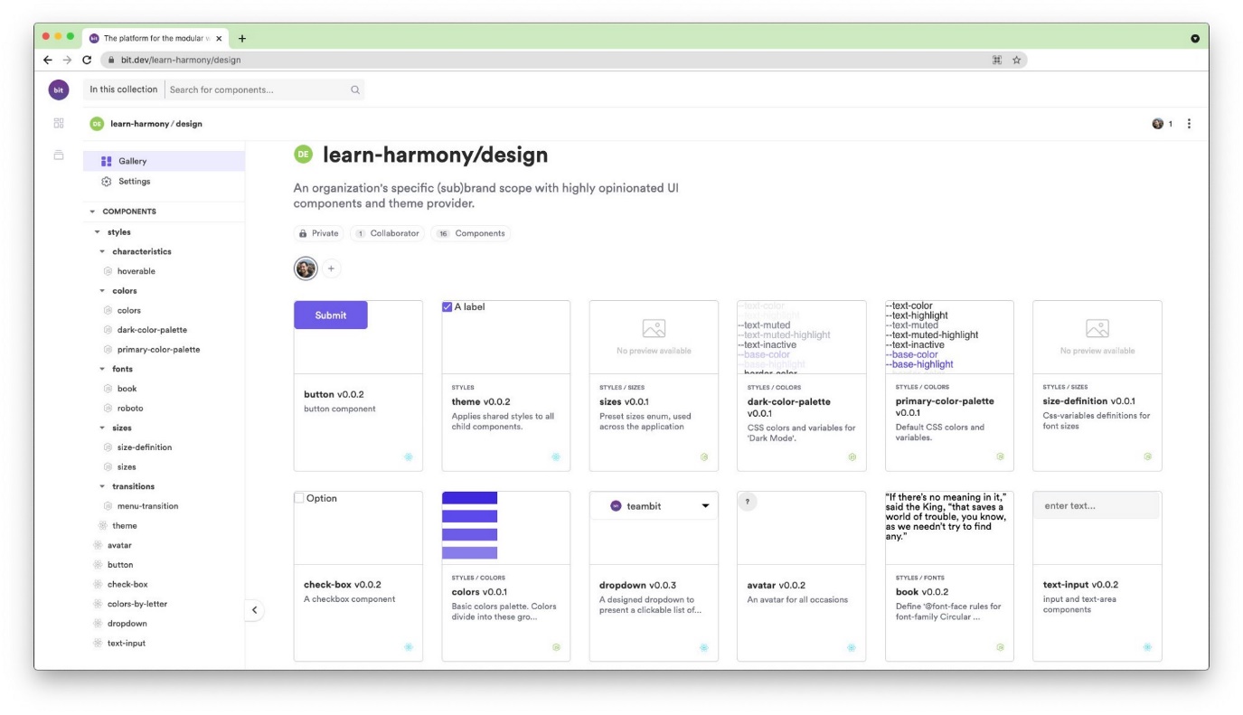 قبل از شروع کار، برای درک بهتر تصویری واضح از ظاهر یک کتابخانه ساخته شده با Bit که چندین کامپوننت مستقل را میزبانی میکند در زیر مشاهده میکنید: